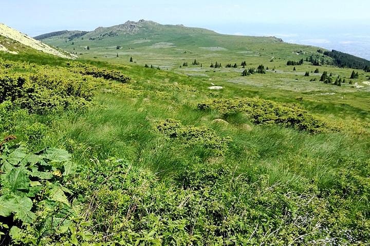Our hiking trek takes you on a loop trail, starting from Aleko Hut and going as high as Cherni Vrah summit (2290m), then descending along a different path back to Aleko Hut. Starting from appr. 1750m. above sea level we first traverse the foot of Golyam Rezen Peak and Malak Rezen Peak. This stage is particularly scenic with constant views towards the capital Sofia, the Balkan Mountains, and the highest summits of the Rila Mountains far in the distance. Eventually, we arrive at Cherni Vrah Peak (2290m), where we will have a well-deserved rest. When descending down we will pass through the Torfeno Branishte (The Peat) Reserve, eventually arriving back to Aleko Hut.